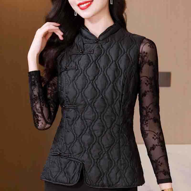 Модная новинка 2024 года, зимняя черная безрукавка в китайском стиле, куртка с воротником-стойкой, пуховая и хлопковая куртка, пальто, женские топы J821