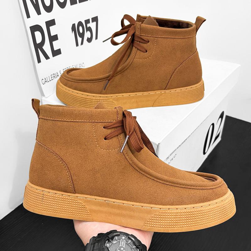 Ретро коричневые повседневные туфли для мужчин Ботильоны Высокие мужские зимние кроссовки Удобные замшевые туфли для мужчин chaussure hommes