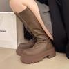 Женские сапоги на платформе до колена, новые модные сапоги 2025 года из мягкой кожи, зимние мотоциклетные сапоги, длинные сапоги на толстой подошве