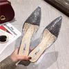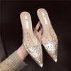 Прозрачные босоножки на каблуках, женские тапочки, мюли со стразами, женская обувь 2024 года, модная элегантная обувь на среднем каблуке, новинка лета 2024 года