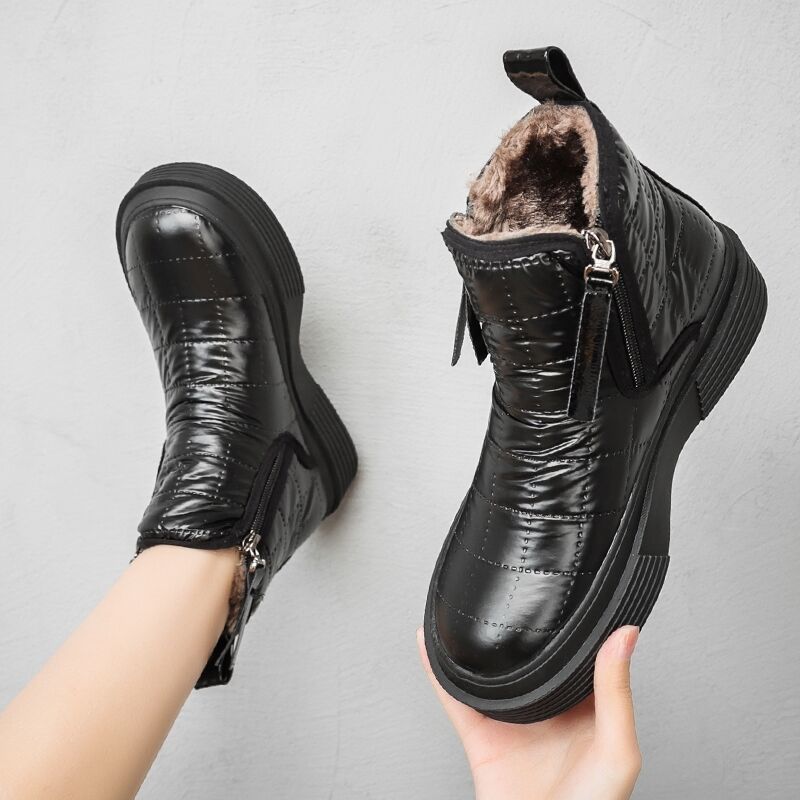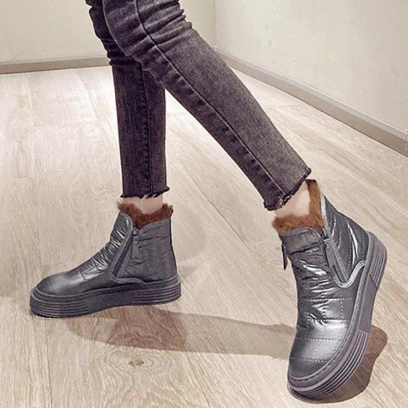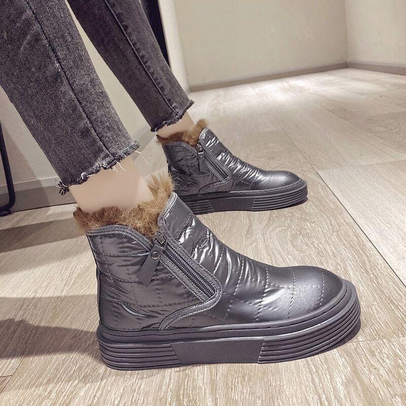 Водонепроницаемые женские зимние ботинки, короткие бочонки на плоской подошве для женщин, теплые серебристые низкие ботинки, зима 2024 года, эластичный мех