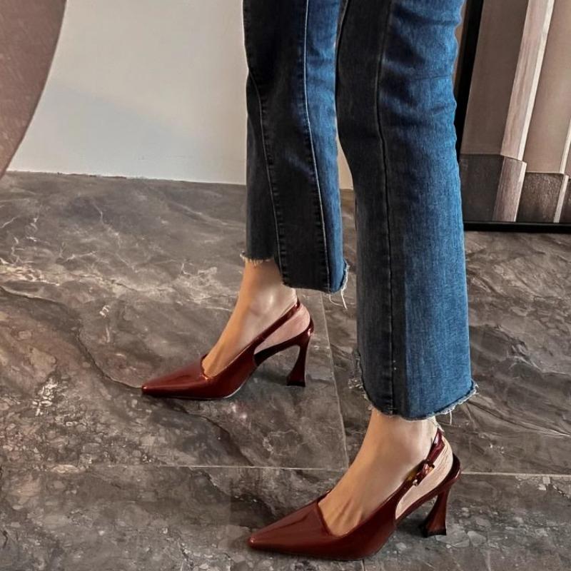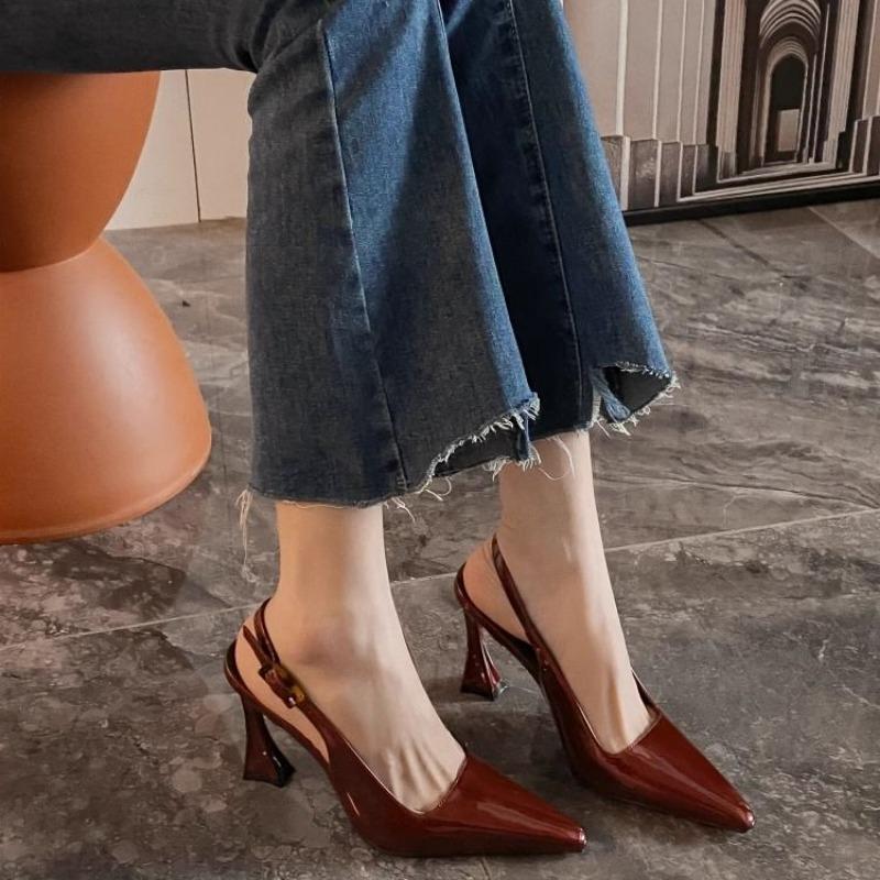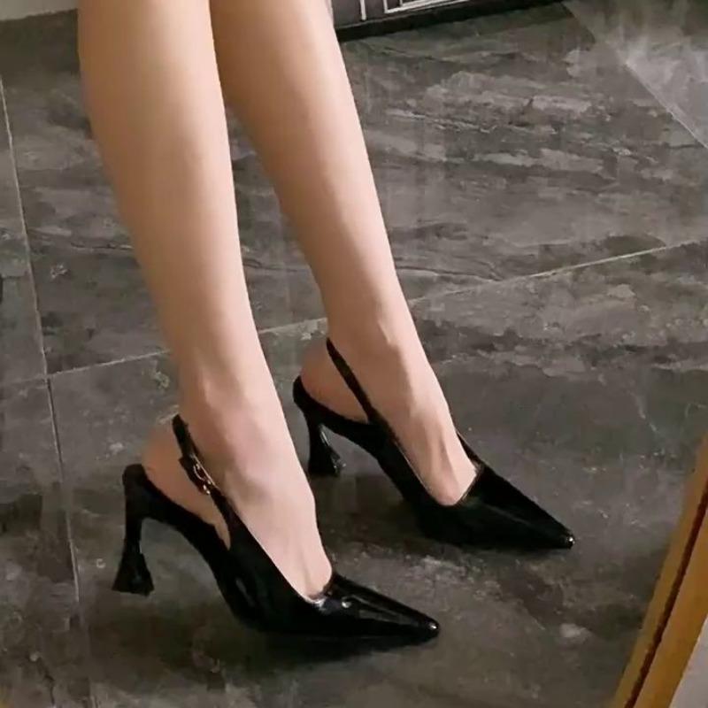 Женские босоножки на шпильках, тонкие каблуки, мюли, заостренный нос, кожаные черные туфли, женская обувь, дешевая ликвидация, комфорт, повседневная или