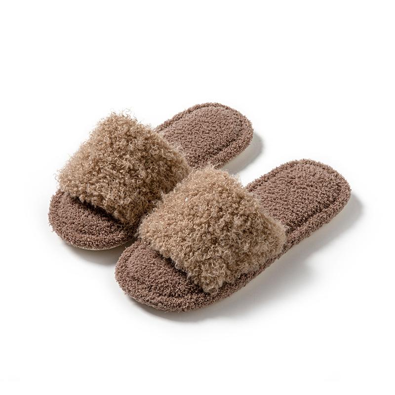 2024 Новые зимние женские меховые тапочки с открытым носком, шлепанцы, утолщенные, теплые, плюшевые, домашняя обувь, парные домашние тапочки для спальни, слайдеры