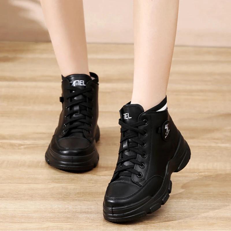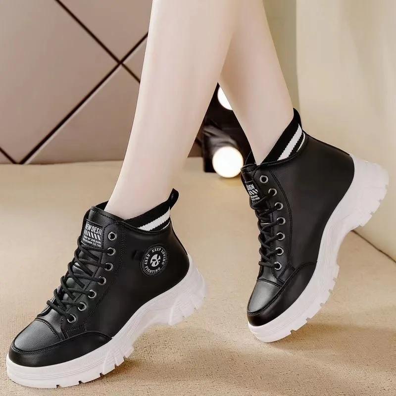 Новинка 2024 года, женские ботильоны, теплая зимняя женская обувь из искусственной кожи, высокие кроссовки, женская нескользящая повседневная обувь на шнуровке, Zapatillas