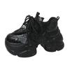 Женские блестящие красные массивные кроссовки, зимние теплые меховые туфли на высокой платформе, женские повседневные туфли на танкетке для папы, кожаные спортивные кроссовки 8 см