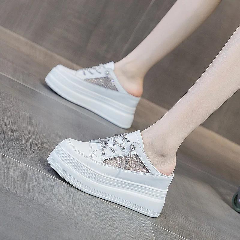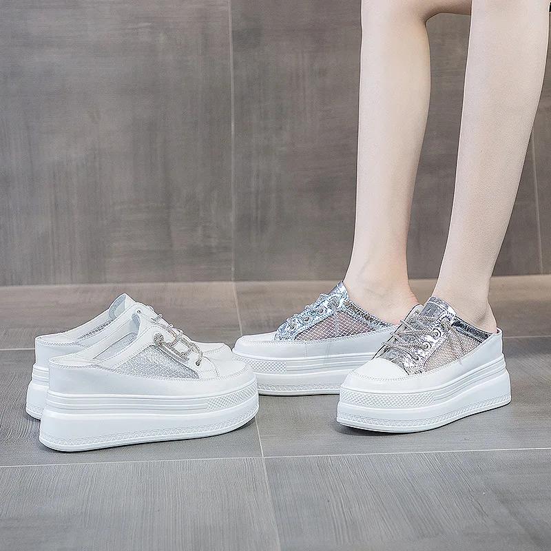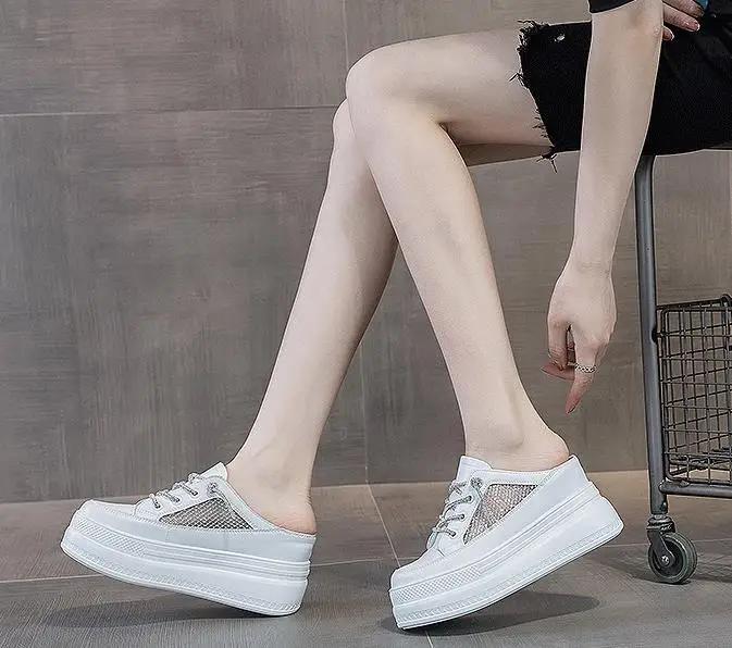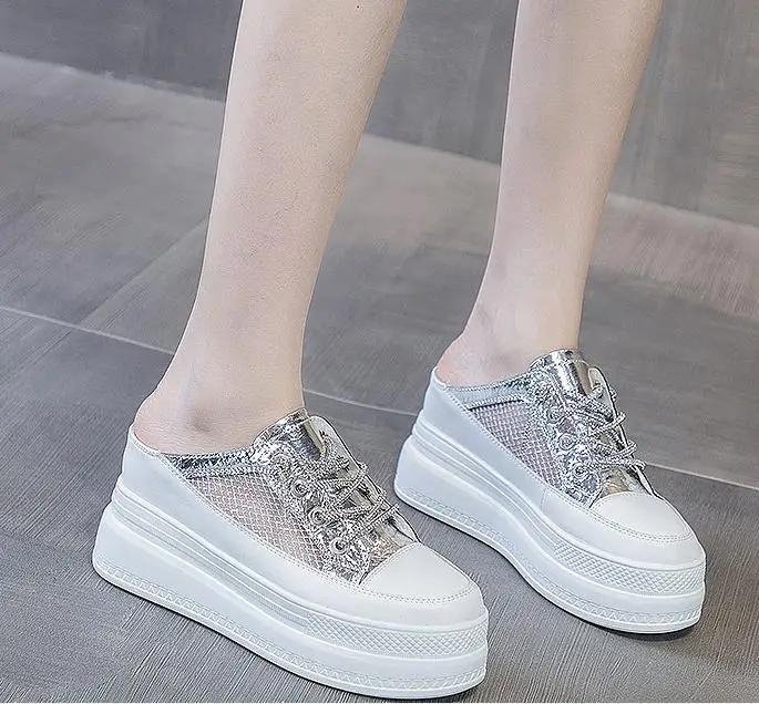 8 см тапочки-слайды слипоны из микрофибры женские летние туфли на танкетке модные блестящие тапочки на платформе с сетчатой подошвой сандалии