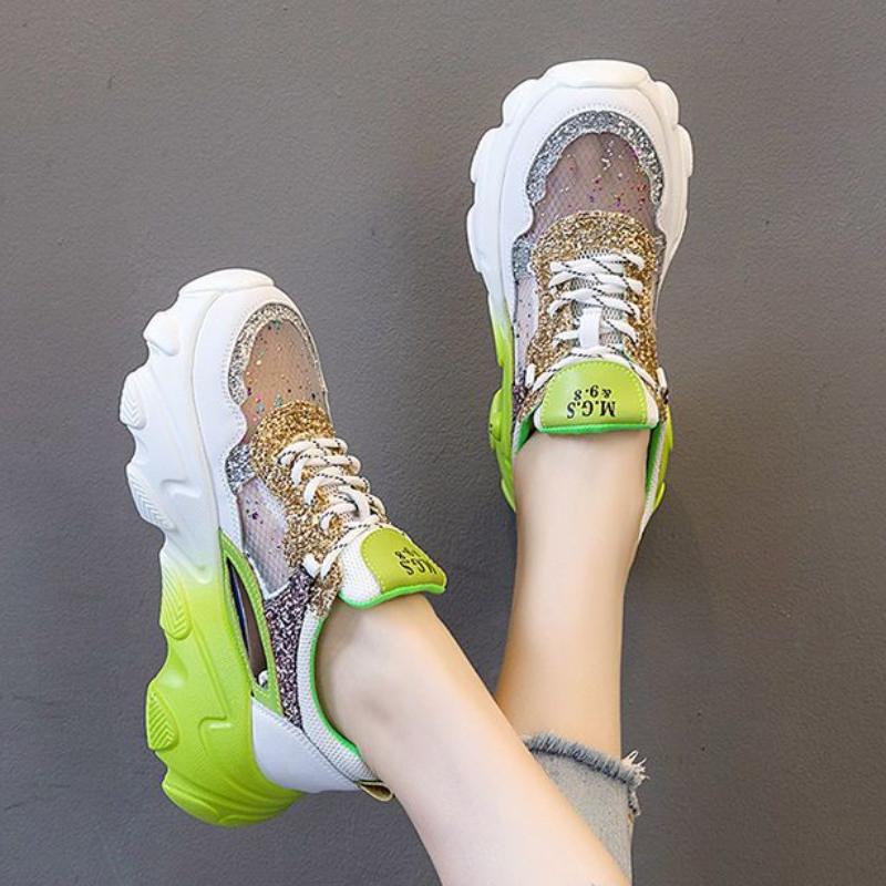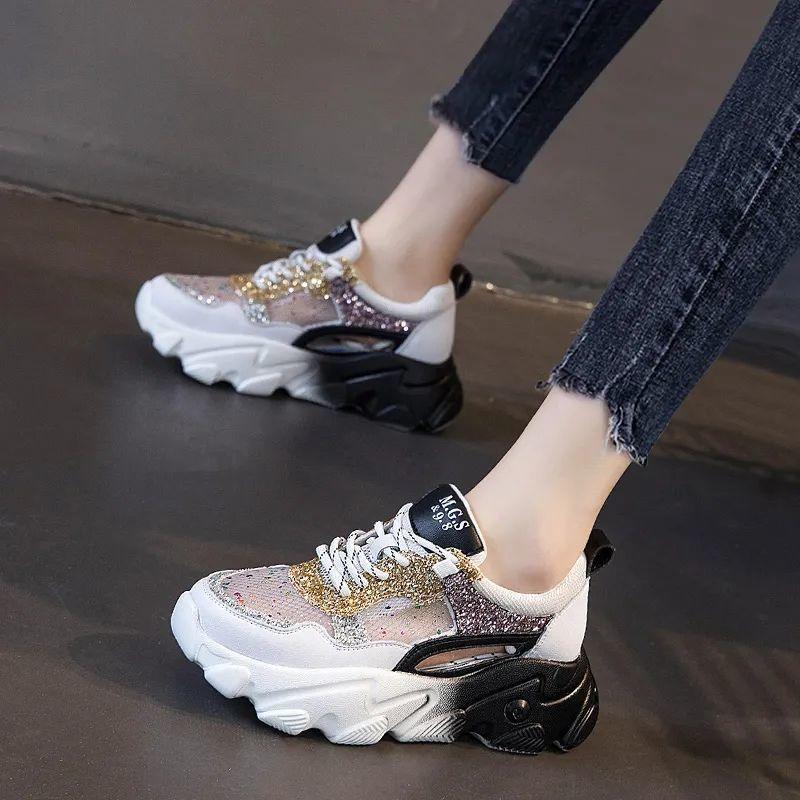 Зеркало Роскошные женские спортивные кроссовки Повседневные толстые милые кроссовки для женщин Теннисный дизайнер на платформе Модные прозрачные