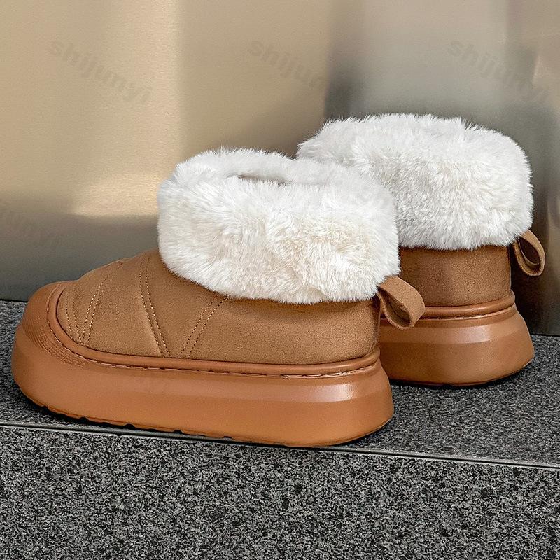 2024 New Fluffy Snow Boots Women Comfort Plush Lined Cotton Padded Shoes Woman Slip on Faux Suede Non Slip Winter Short Boots