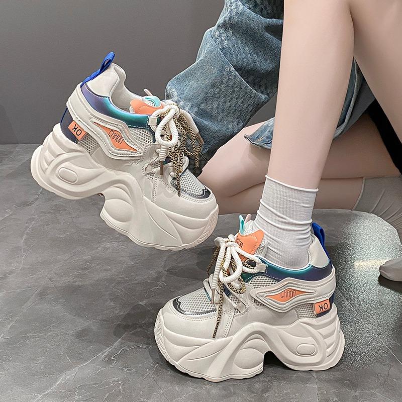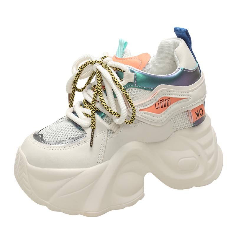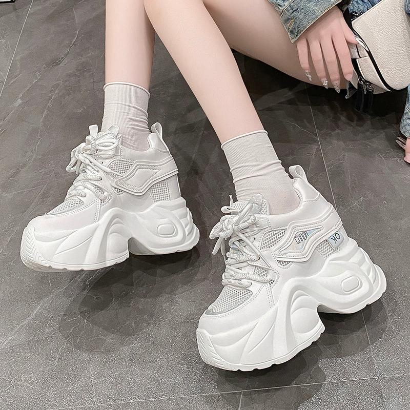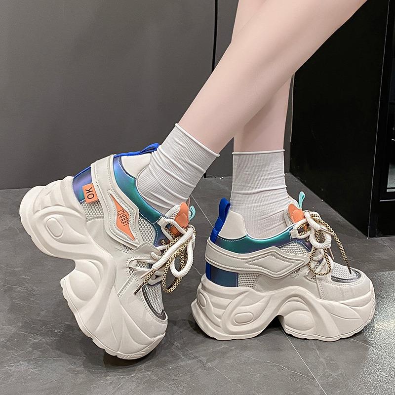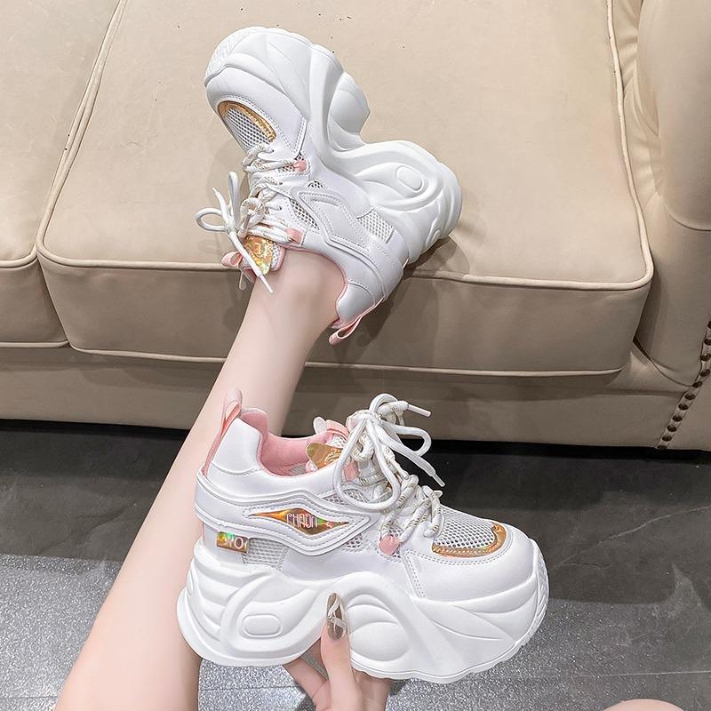 Женские сетчатые кроссовки на толстой подошве, летние туфли на высокой платформе, каблук 10 см, повседневная обувь на танкетке, женские дышащие спортивные кроссовки для папы
