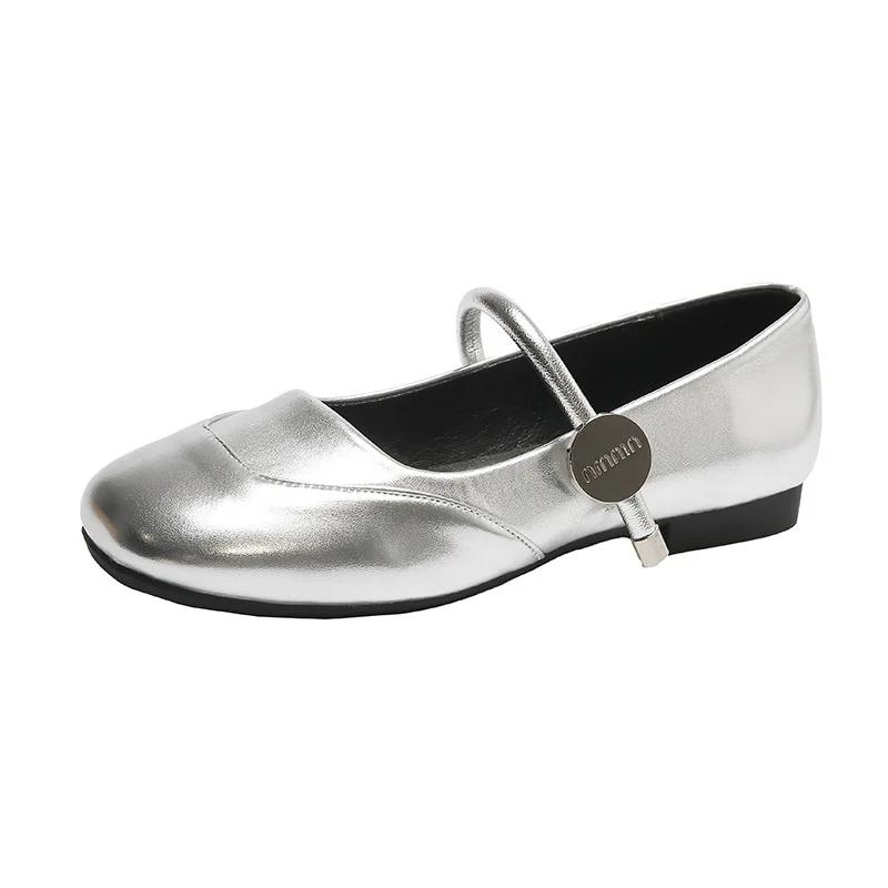 Новые балетки 2024 года с квадратным носком, модные туфли Мэри Джейн на низком каблуке, повседневные серебристые туфли с мелкой пряжкой, Zapatos De Mujer