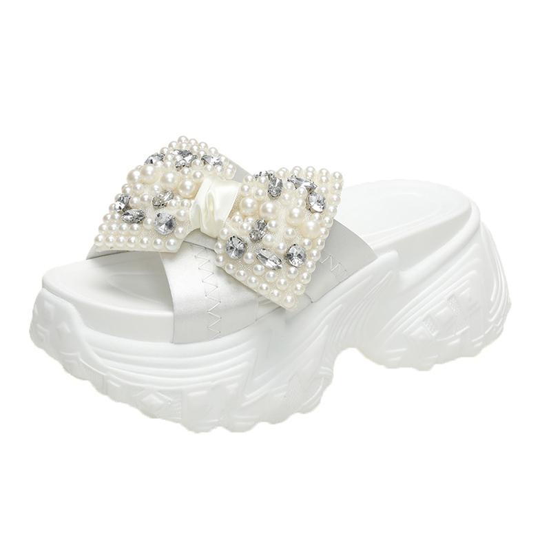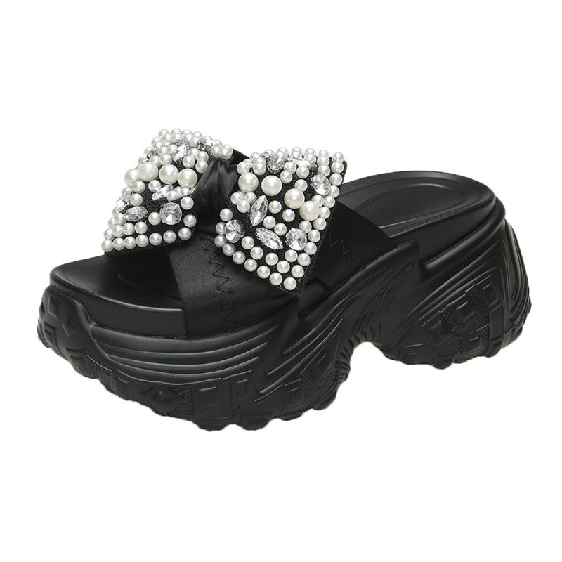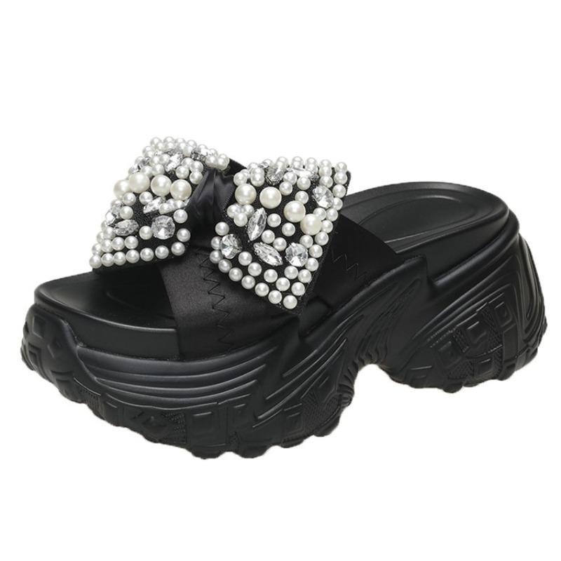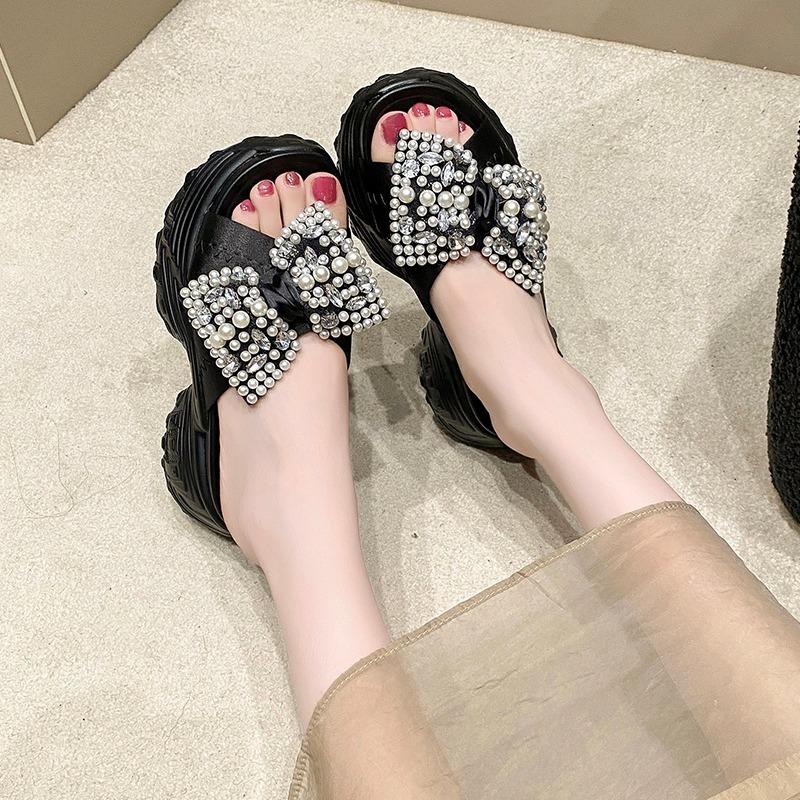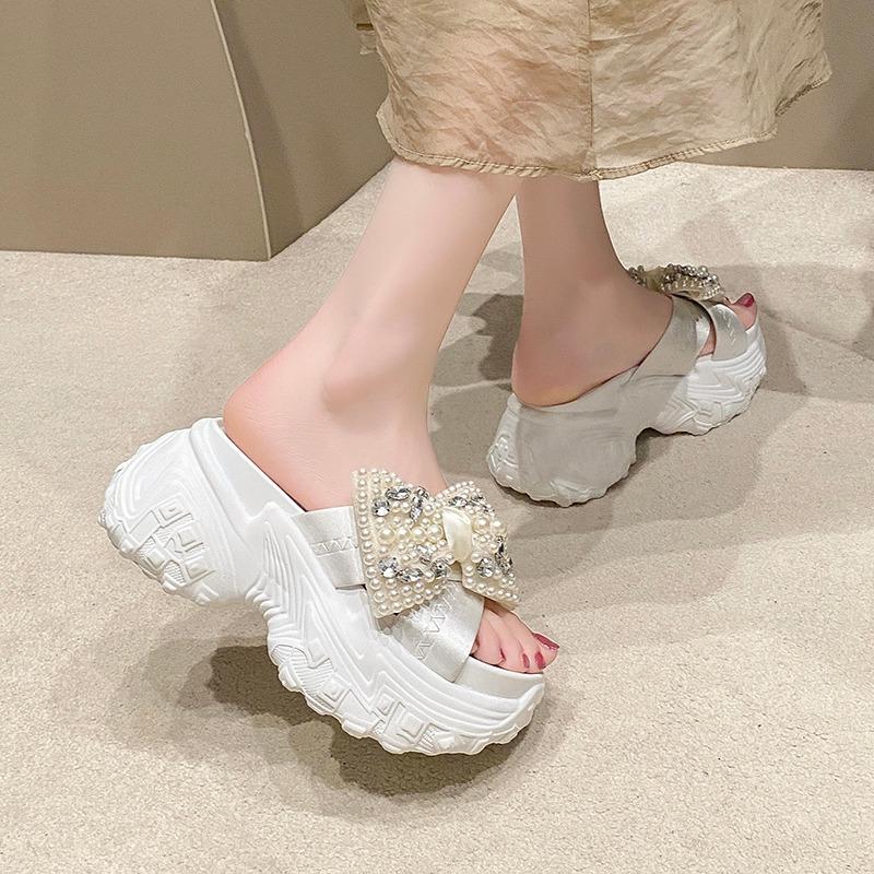 8 см блестящие стразы высокие тапочки на платформе женские каблуки-бабочки толстые босоножки женские летние толстые подошвы танкетки шлепанцы