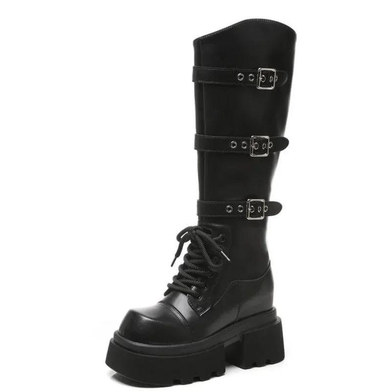 9,5 см модные женские ботинки из микрофибры синтетические кожаные ботинки осенние на платформе танкетка колено модные британские ботильоны весенние туфли