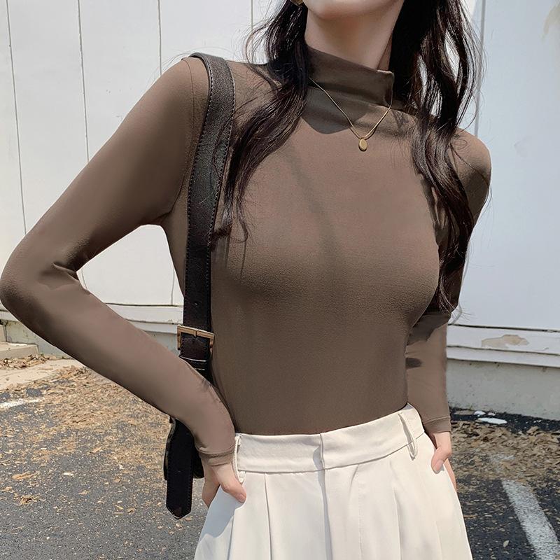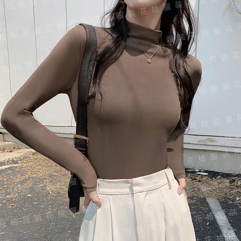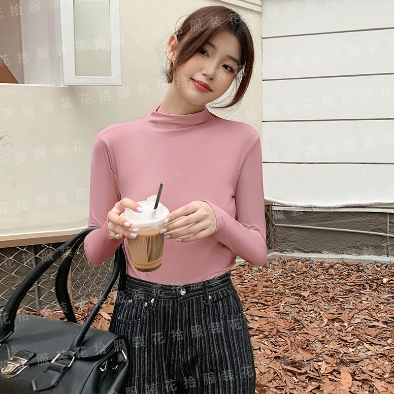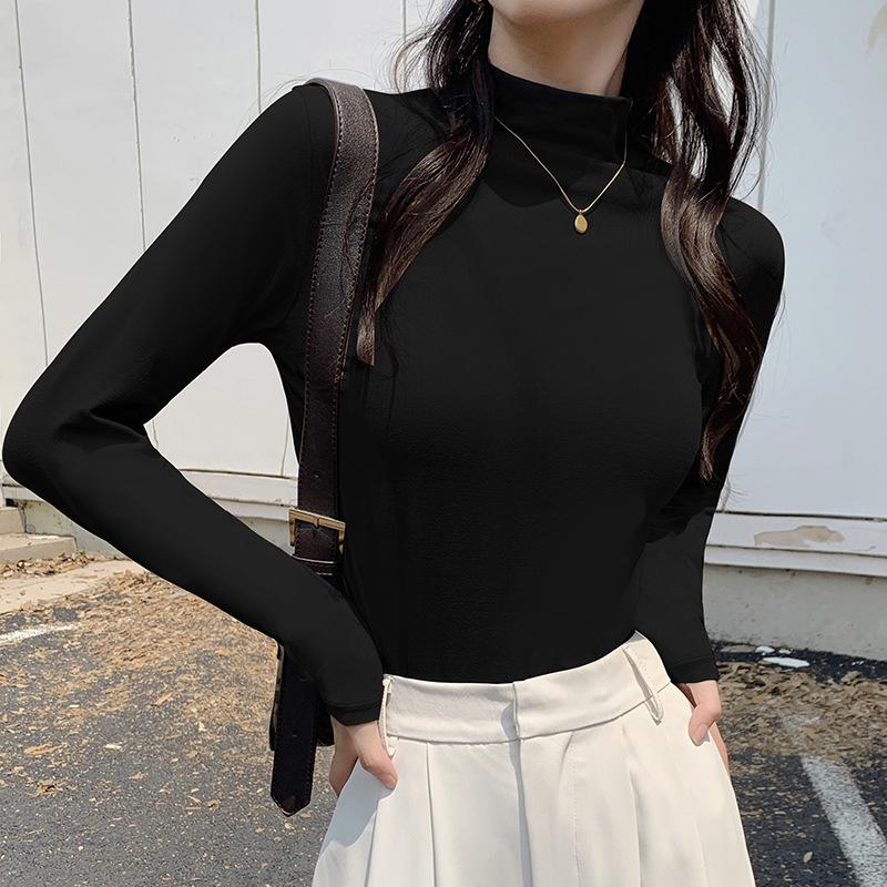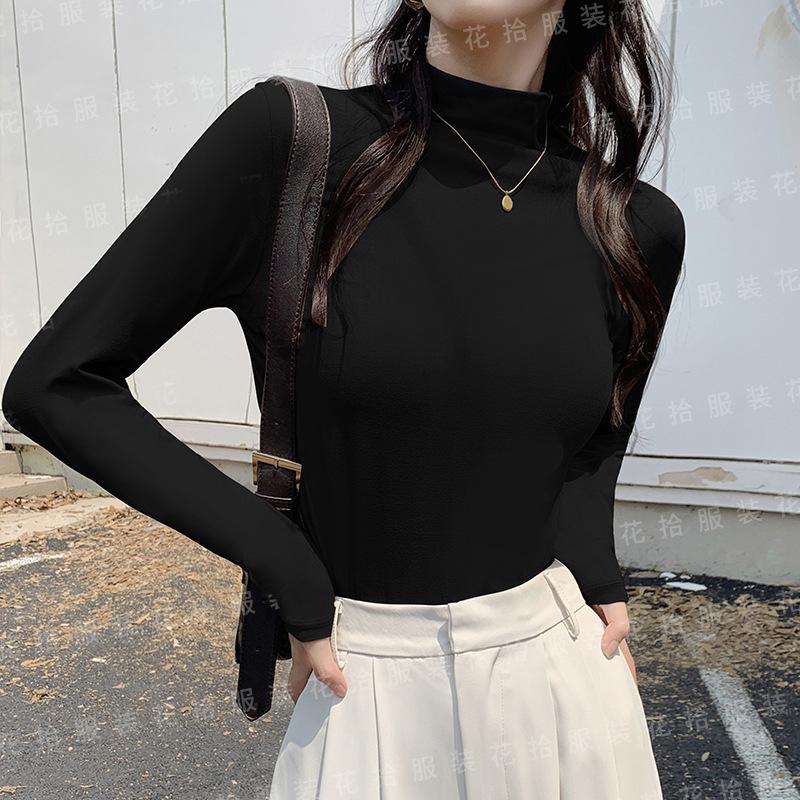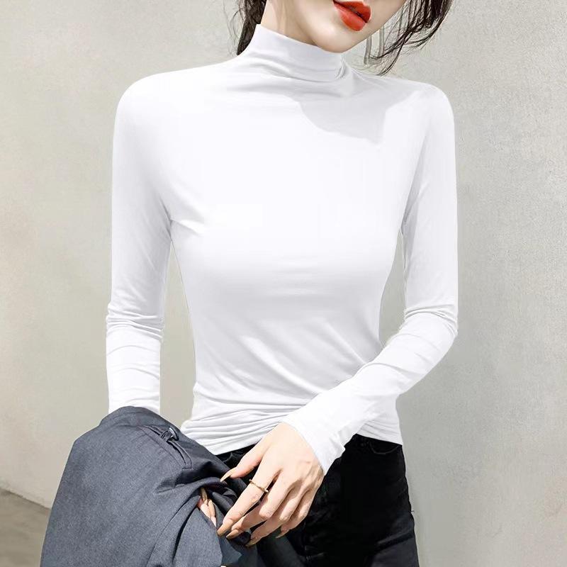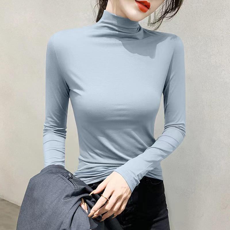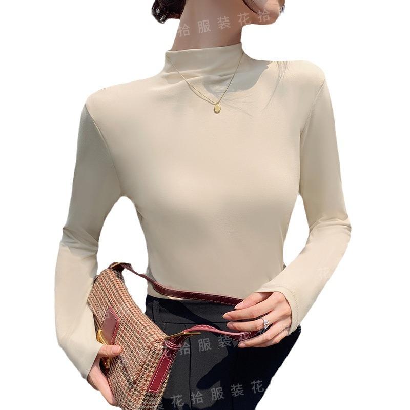 Девятицветная полуводолазка для женщин, весенняя и осенняя рубашка с длинными рукавами, облегающая футболка, универсальная футболка в иностранном стиле