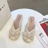 Домашние мюли, женские тапочки на низком каблуке и босоножки с бантом, лето 2024 г., мягкие домашние туфли, уникальная роскошь, легкая одежда, W