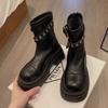 Ботинки кожаные черные с круглым носком женские короткие туфли на платформе в стиле панк массивные ботильоны для женщин распродажа высококачественные ботинки