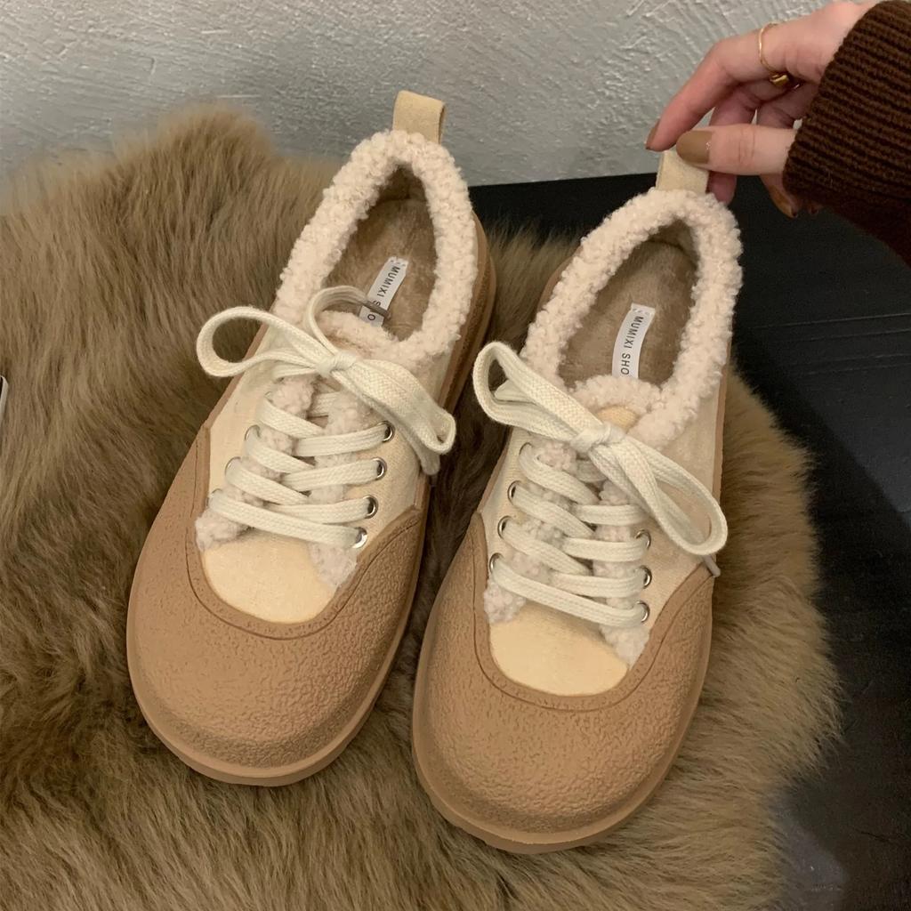 2024 Женские зимние ботинки Теплые плюшевые бархатные зимние ботинки на шнуровке Мягкие зимние кроссовки Удобная хлопковая обувь для женщин