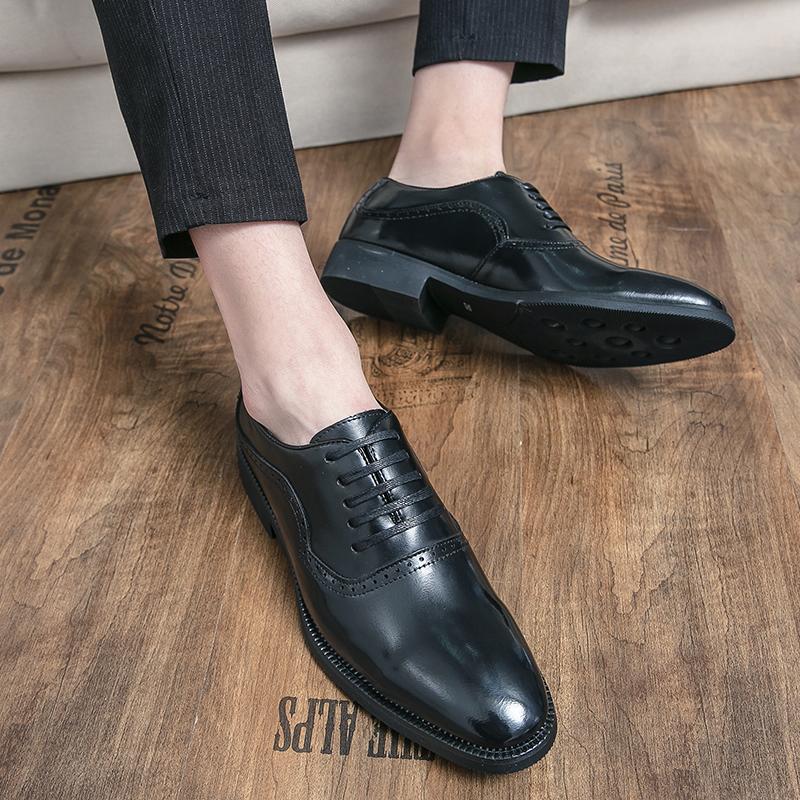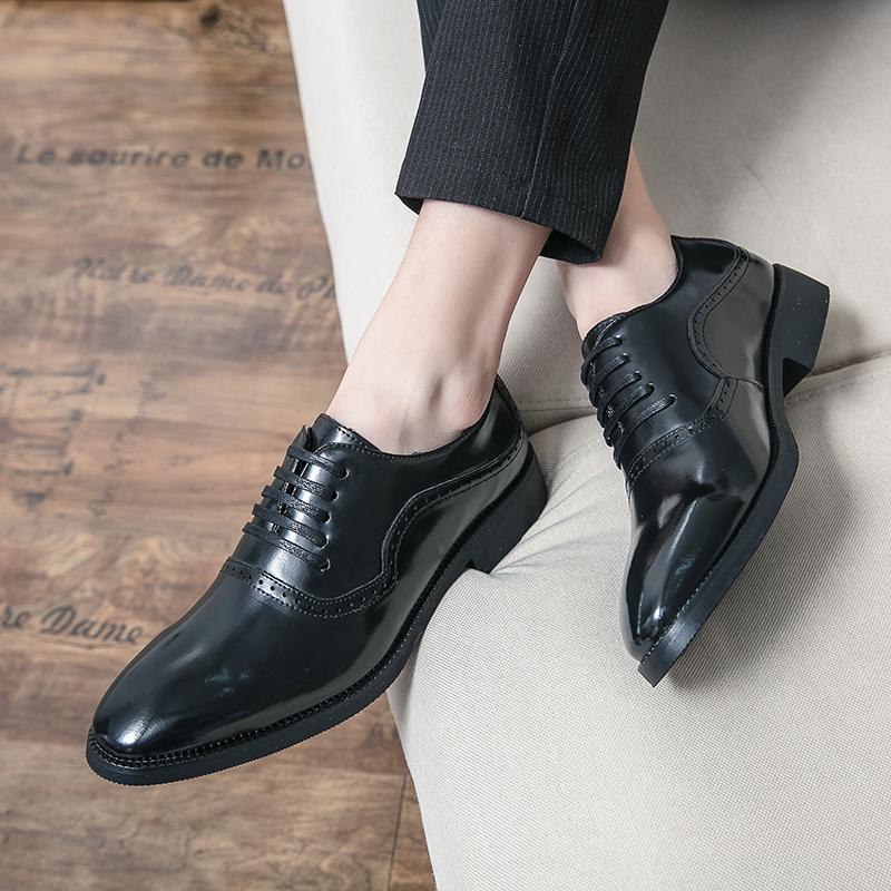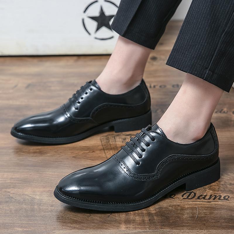 Модная обувь Оксфорды Мужская шнуровка Популярная лакированная кожа Белая подошва Мужская шнуровка Деловой костюм Блок Резная кожаная обувь большой размер 48