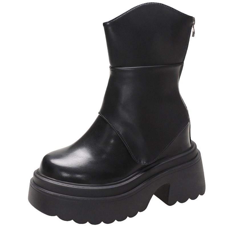 Модные 11 см толстые каблуки мотоциклетные ботинки высокая платформа осенние кожаные кроссовки женские зимние теплые ботильоны толстые короткие панк-ботинки — купить товар онлайн с бесплатной доставкой по всему миру!