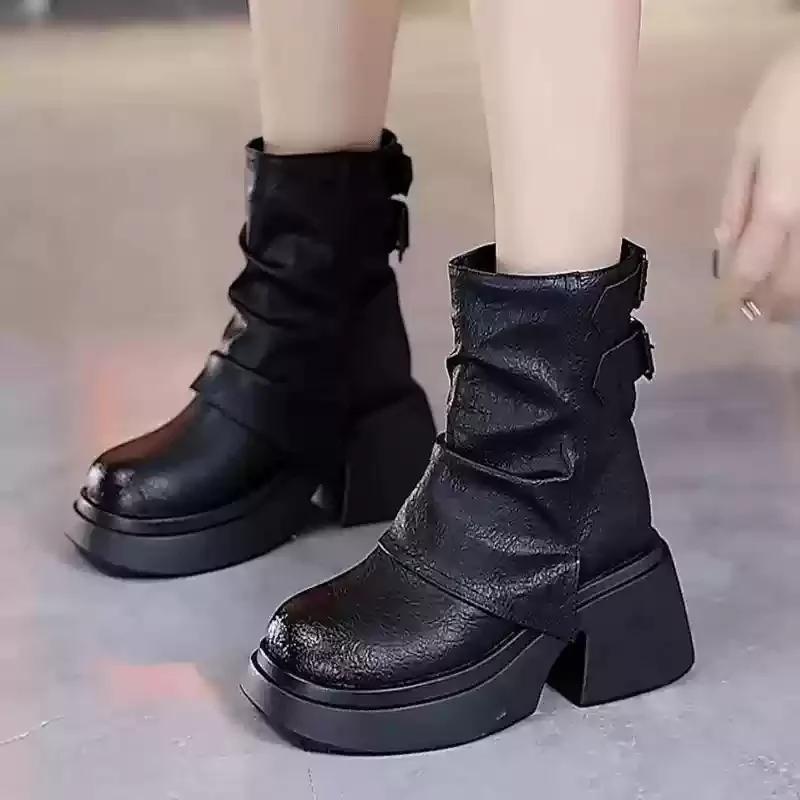 Модные ботильоны на толстой платформе для мотоциклистов, брендовые роскошные женские туфли из искусственной кожи, дизайнерские 2025 года, тренд, новый ретро-стиль, челси, ботинки-ботинки Mujer