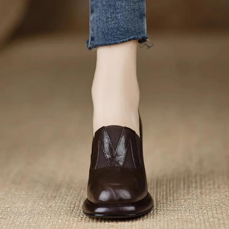 Модные женские туфли-лодочки в стиле ретро, весна-осень, на толстом квадратном каблуке, женские туфли-лодочки с квадратным носком во французском стиле, 7,5 см