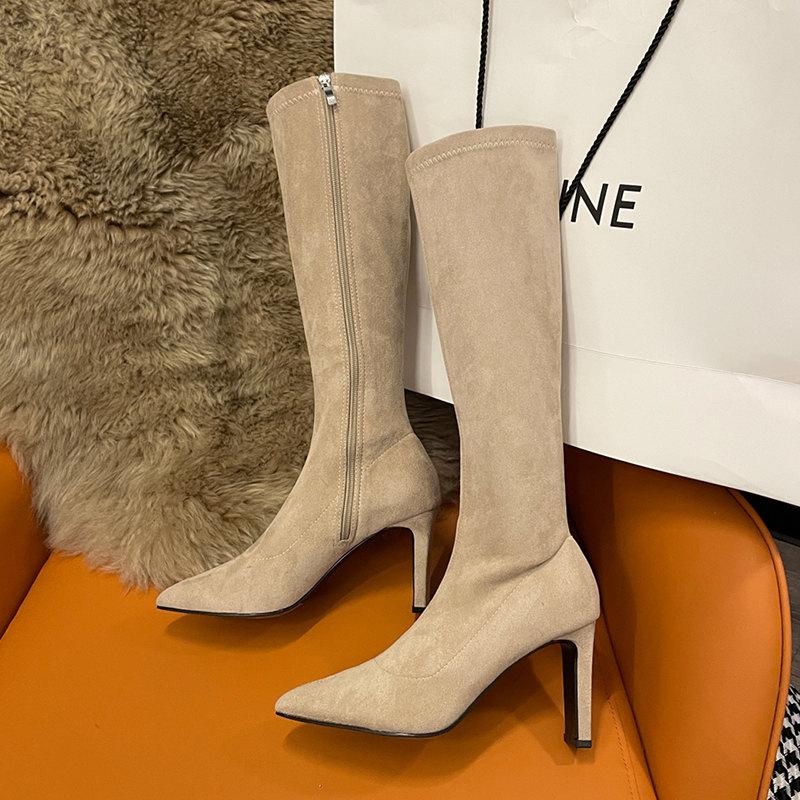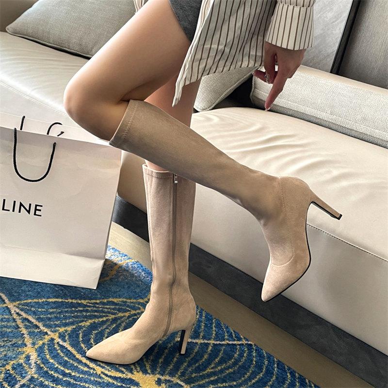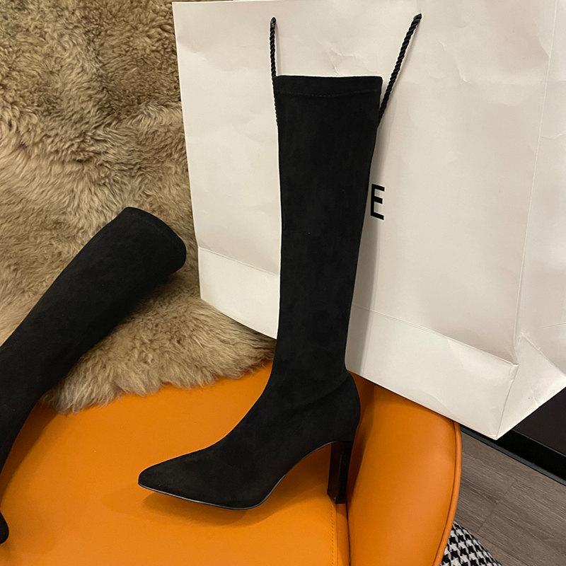 Сексуальные эластичные чулки женские сапоги 2024 новые сапоги Модные остроносые сапоги до колена женские сапоги на высоком каблуке с боковой молнией для ночного клуба
