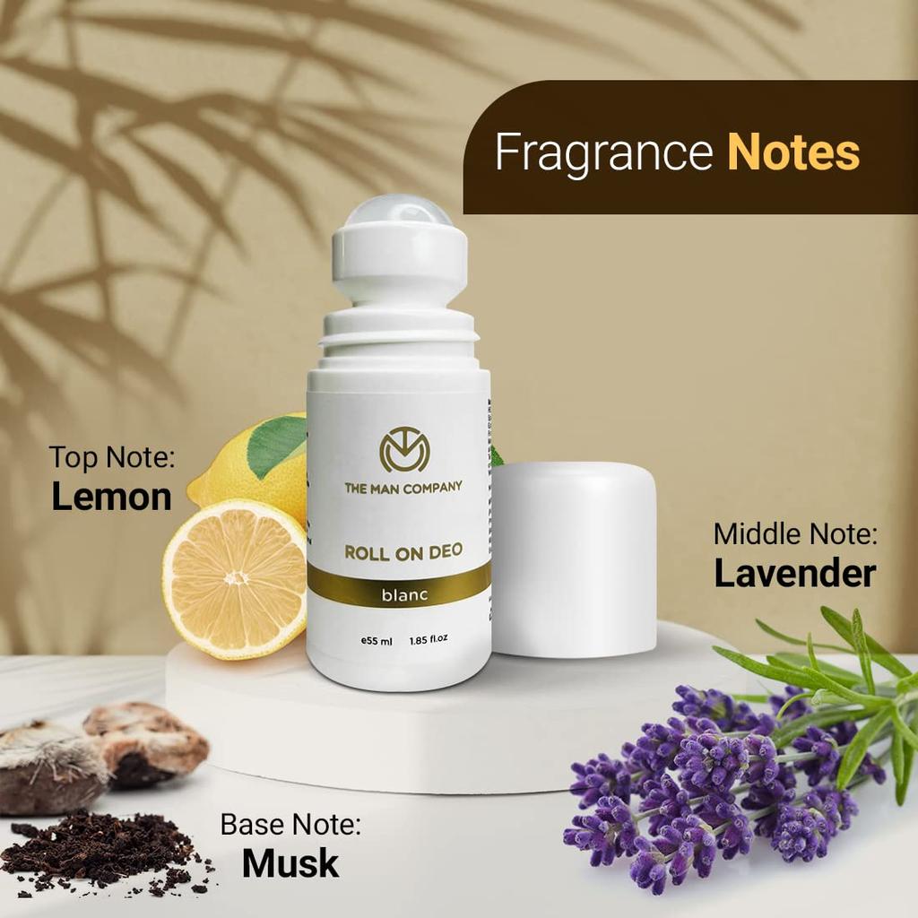 The Man Company Roll On Deo For Men - Blanc | Премиальный аромат с 24-часовой свежестью | Предотвращает появление запаха пота, осветляет и отшелушивает подмышки | Стойкий дезодорант - 55 мл, упаковка из 1 шт.