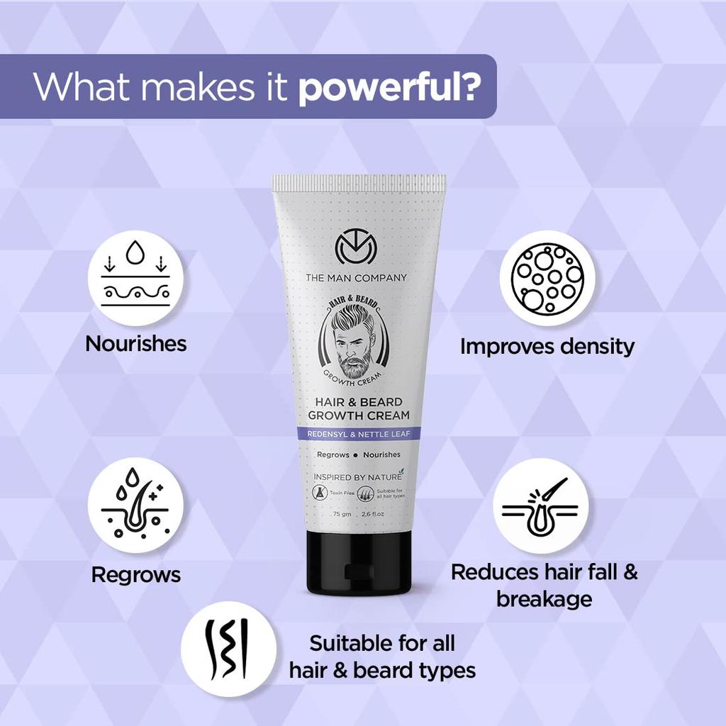Крем для роста бороды и волос The Man Company для мужчин, с реденсилом и листьями крапивы, восстанавливает и питает, 75 г