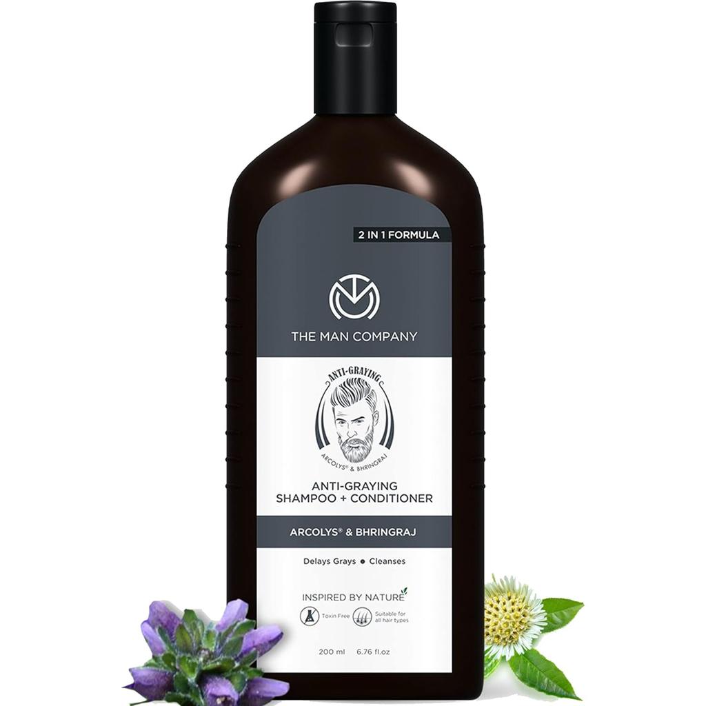 The Man Company Шампунь и кондиционер 2 в 1 против седины для мужчин, обогащенный шикакаем и брингараджем, замедляет появление седины, очищает, придает уверенность, без лаурилсульфата натрия и парабенов, для всех типов волос, 200 мл