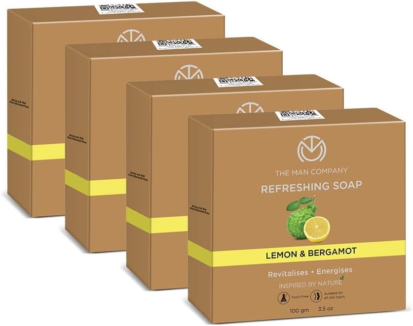 Освежающее мыло для купания The Man Company, 100 г, длительная свежесть премиум-класса, лимон и бергамот, освежает, заряжает энергией, увлажняет и омолаживает, для всех типов кожи, упаковка из 4 шт.