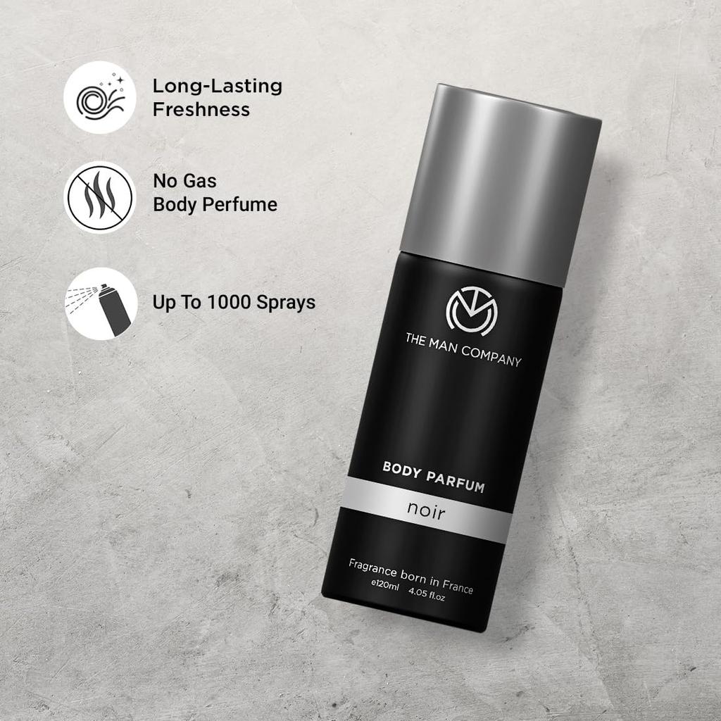 THE MAN COMPANY Noir Perfume for Men | Стойкий аромат | Набор дезодорантов No Gas Combo для мужчин | Премиальный спрей для тела класса люкс - 120 мл * 2