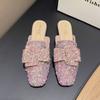 Женские элегантные летние универсальные тапочки на плоской подошве с квадратным носком, украшенные стразами, женские уличные туфли Muller