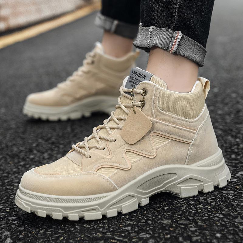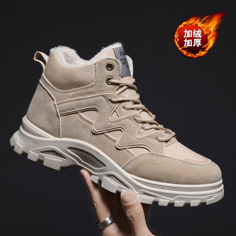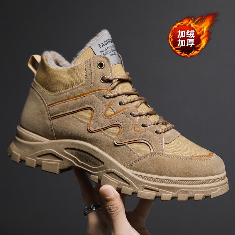 Осень и Зима Новые Утепленные Уличные Ботинки Мужские Короткие Ботинки Пустынные Ботинки Толстая Подошва Утепленные Мужские Ботинки