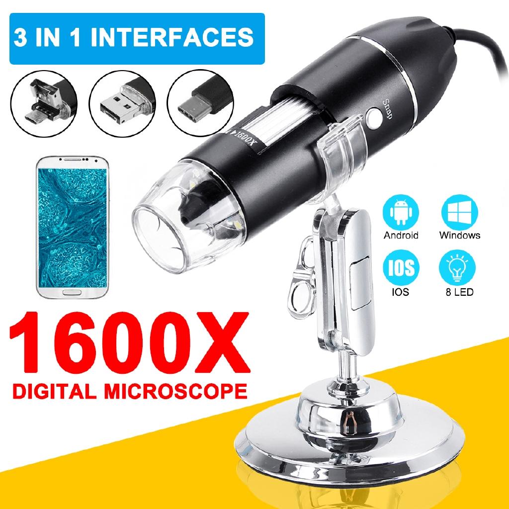 3 в 1 портативный HD 1600X 2MP зум-микроскоп 8 светодиодов Micro USB Type-c цифровая портативная лупа эндоскопическая камера