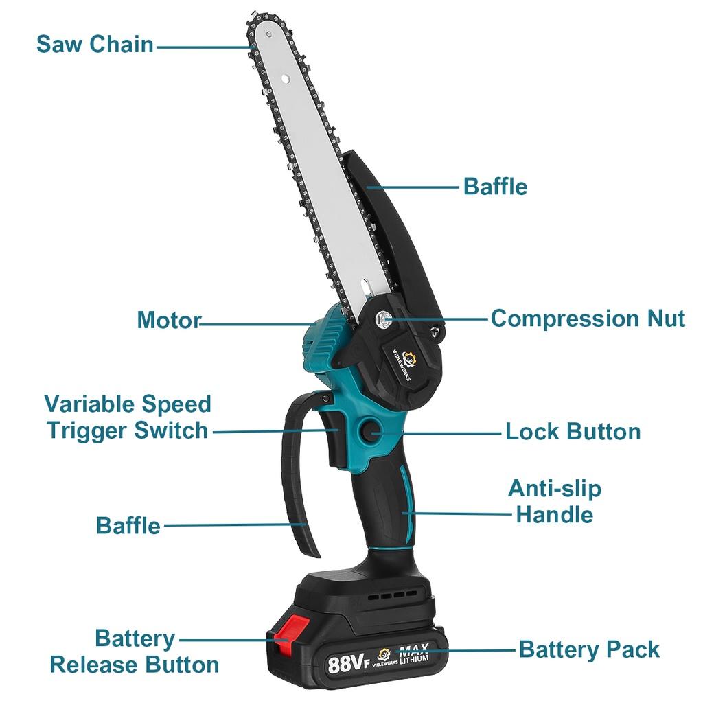 - Острая и прочная цепь: высококачественная цепь из сплава, износостойкая и долговечная, быстрая и плавная распиловка без заклинивания.