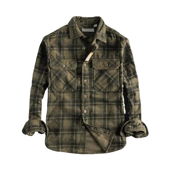 Эта мужская рубашка — универсальная вещь, которую можно легко сочетать с различными повседневными брюками и джинсами.. Его ретро-стиль создает непринужденную, элегантную и артистичную атмосферу, идеально подходящую для разных случаев.. Однобортный лацкан и клетчатый узор придают общему образу нотку изысканности..