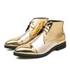 Кожаные роскошные брендовые мужские универсальные мотоциклетные ботинки золотистые мужские повседневные туфли с острым носком 2024 модные мужские ботильоны на шнуровке