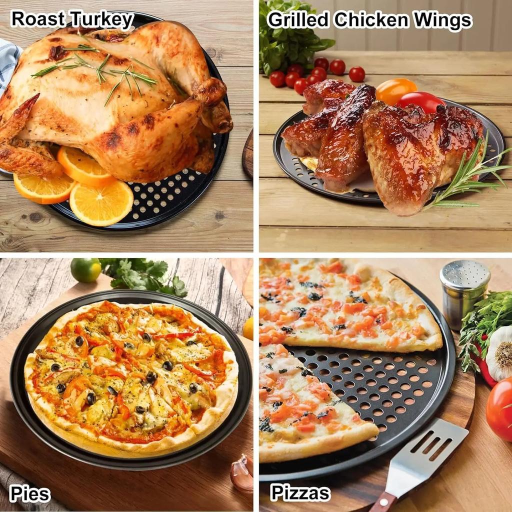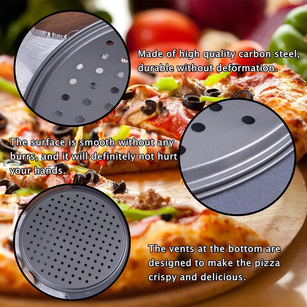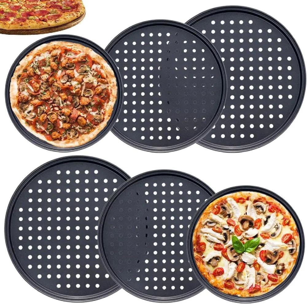 Противень для пиццы 4-го размера с отверстиями из углеродистой стали с антипригарным покрытием, сетчатый поддон, круглая глубокая тарелка, форма для пиццы, инструмент для выпечки, новый