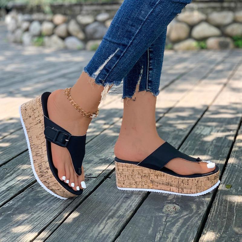 Женские летние шлепанцы, женские босоножки на танкетке и платформе 2024, женские повседневные тапочки на толстой подошве, черные, розовые, белые