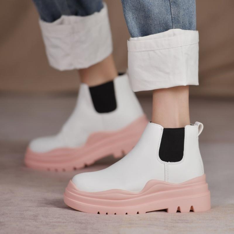 Толстые подошвы челси ботинки женские натуральная кожа мотоциклетные ботинки 2024 обувь на платформе женские плоские короткие ботинки женскиеdt6