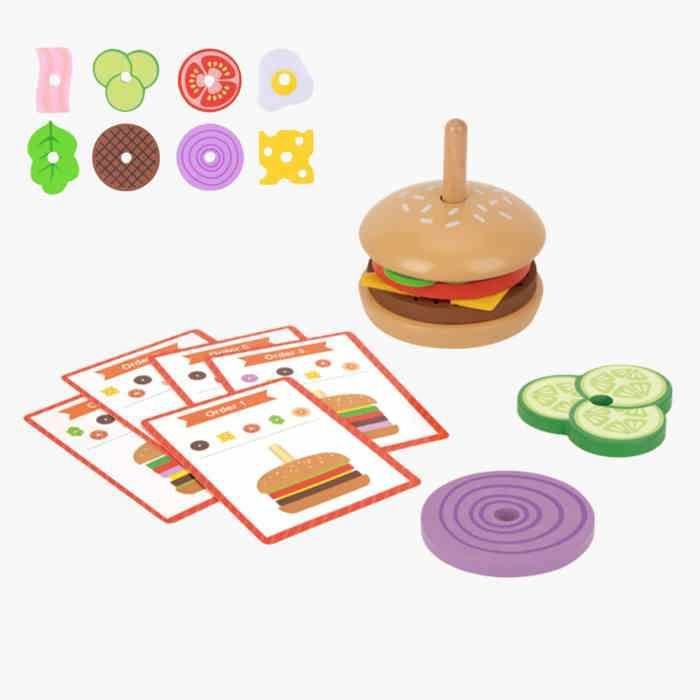 Деревянный гамбургер, деревянные штабелируемые игрушки, имитационная игра, игрушка Монтессори для детей — купить товар онлайн с бесплатной доставкой до всему миру!