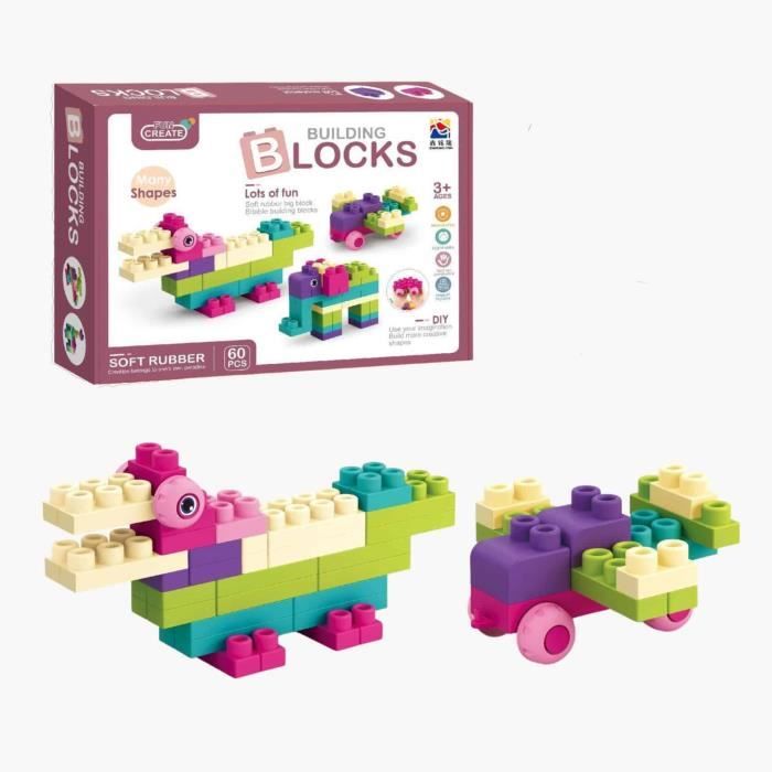 Briques de Construction - Non spécifié - 60 pièces - Rose - Plastique souple - Jouet éducatif