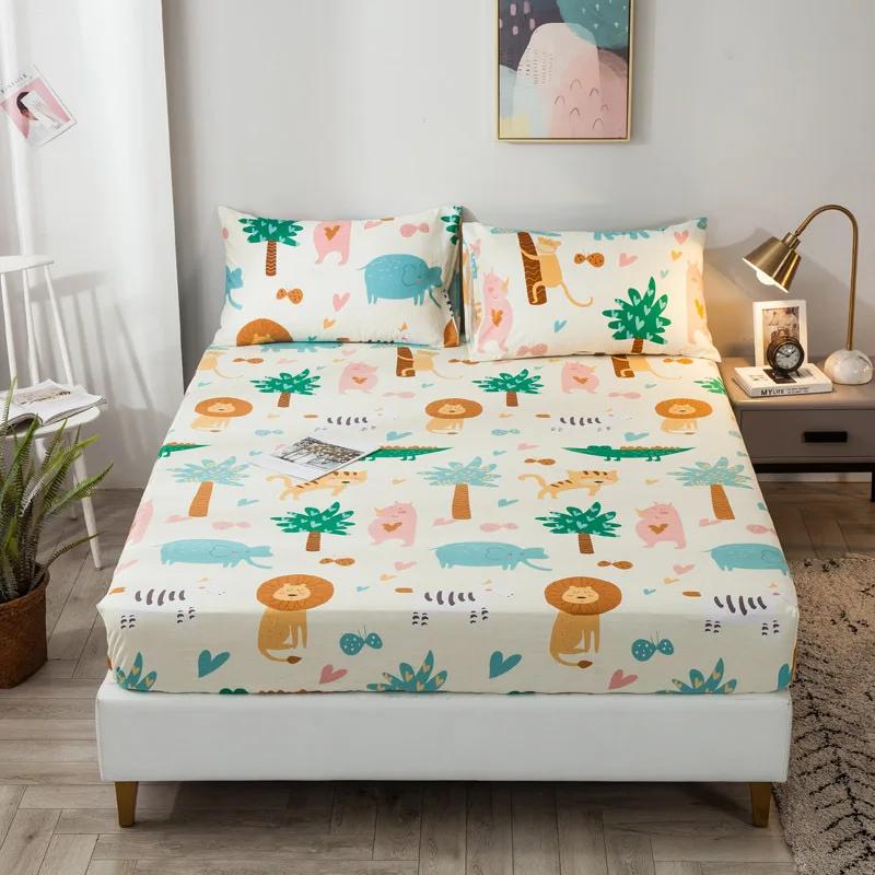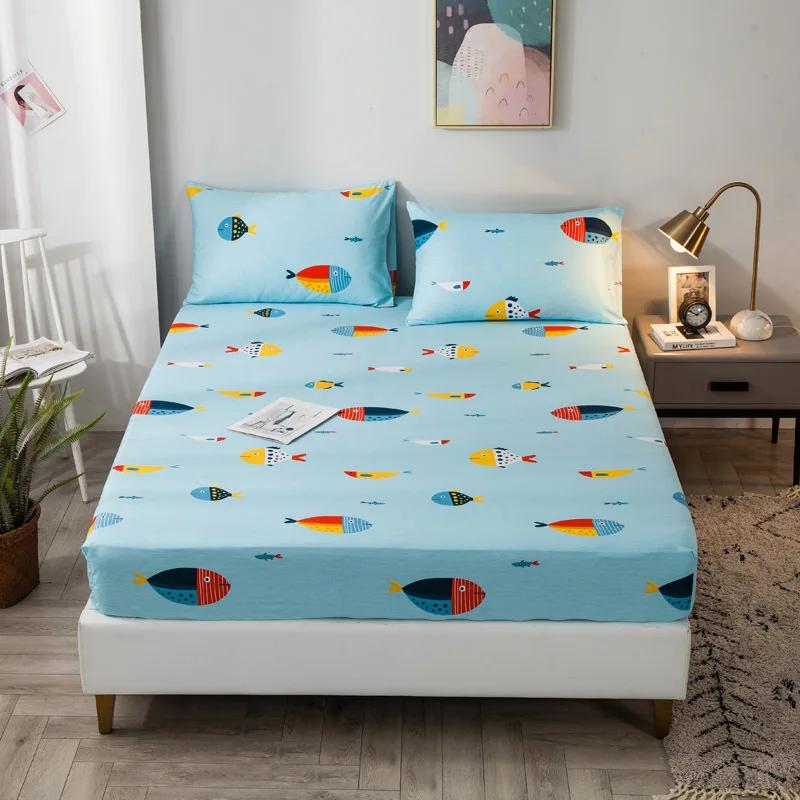 Чистый хлопок напечатанный простыня на резинке только нескользящий защитный чехол для спальни (нет наволочки)