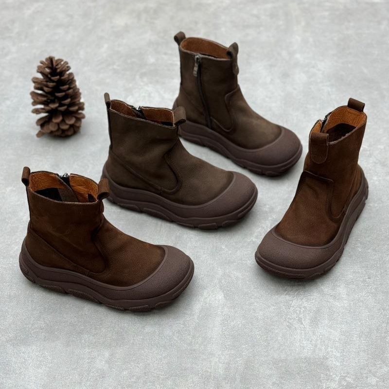 Винтажные кожаные короткие сапоги ручной работы, повседневные кожаные сапоги с толстой подошвой — купить товар онлайн с бесплатной доставкой по всему миру!