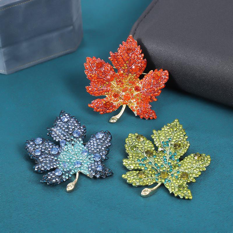 Винтажные большие броши в виде красного кленового листа со стразами для женщин и мужчин, элегантные броши в виде листьев растений из кристаллов, роскошные ювелирные изделия, подарки