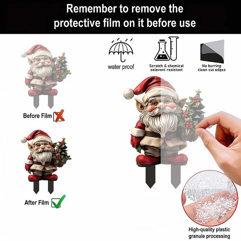 Санта-Клаус Рождественский садовый кол, акриловый Санта-Клаус, вставной знак для двора, праздничные украшения на открытом воздухе, реквизит для вечеринок, орнамент