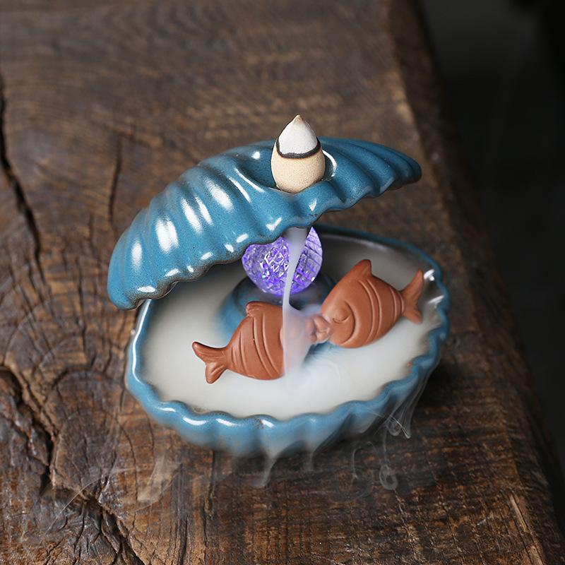 Курильница из раковины рыбы-русалки, фонтан с обратным потоком, держатель для курильницы с ароматом дыма, ароматерпия, держатель для ароматической курильницы со светодиодным шаром