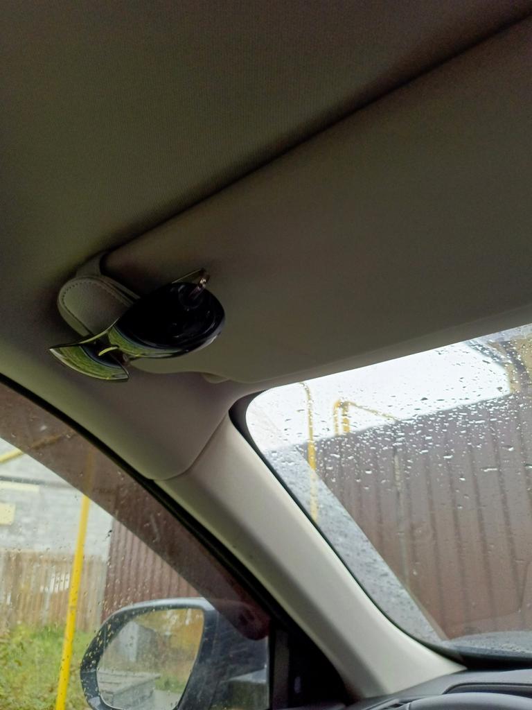 В предыдущей машине был ящичек для очков под крышей. В новой отсутствует. Клал то туда, то сюда. Теперь очкам нашлось место. Опусканию козырька и открыванию встроенного зеркала не мешают. Магнит держит язычок крепко. Хорошая вещь.