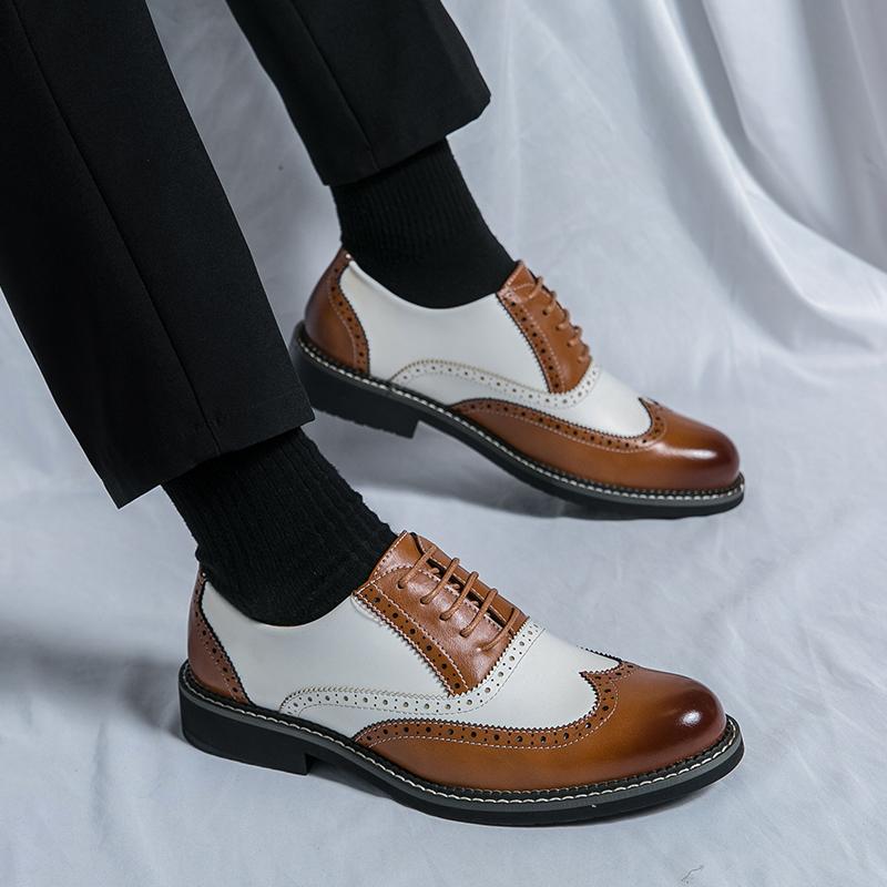 Модные мужские деловые кожаные туфли на шнуровке, оксфорды, британские коричневые заостренные деловые повседневные кожаные туфли, мужские свадебные туфли — купить товар онлайн с бесплатной доставкой по всему миру!