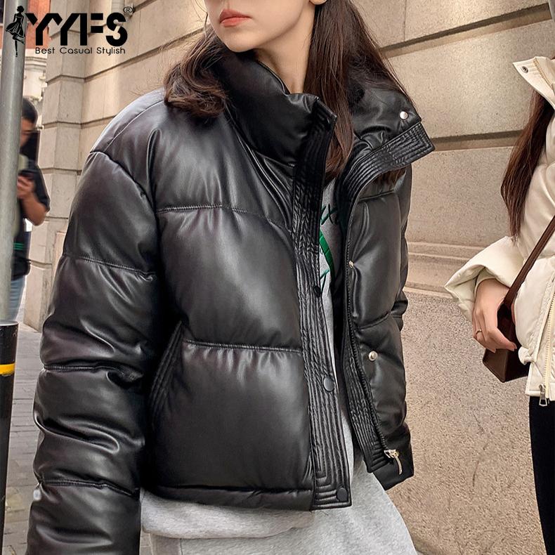 YYFS Женская мода повседневная осень-зима однотонная с принтом длинный рукав воротник стойка утепленные куртки и пальто пуховики