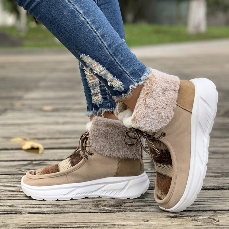 Новые зимние хлопковые сапоги для женщин, модные, с круглым носком, на толстой подошве, подходящие по цвету, на шнуровке, с мягкой подошвой, нескользящие, для снега